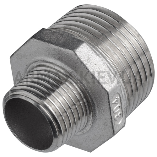 Ниппель нержавеющий – это соединительная деталь трубопровода, служащая для стыковки труб, трубы с фитингом, фитингов и т.д. С обеих сторон переходника нарезана наружная резьба, а посередине находится шестигранник для удобства сборки. Производится из высококачественной нержавеющей стали марки AISI 304. Применяется ниппель в химической, нефтегазовой, пищевой, фармацевтической и других промышленностях, а также в коммунальном и сельском хозяйстве.
