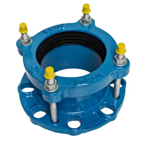 Універсальний фланцевий адаптер Blucast використовується в системах водопостачання для чавунних, сталевих, ПЕ/ПВХ труб.